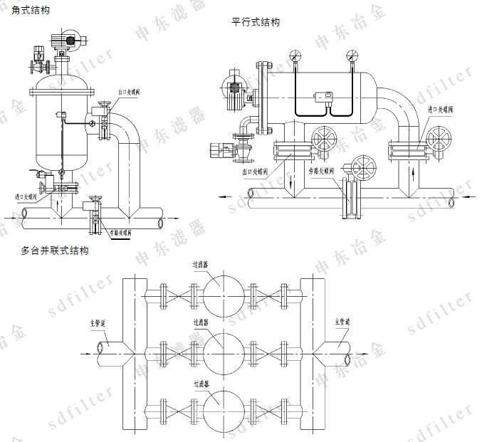 下圖為過濾器的幾種安裝形式,供用戶安裝時參考。