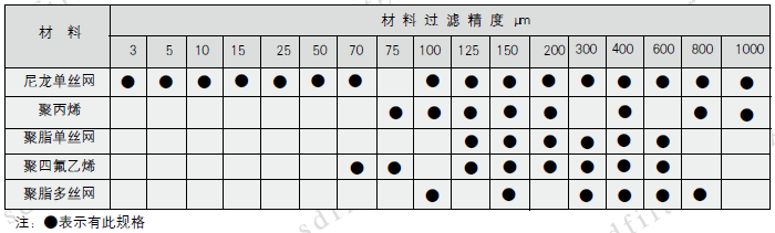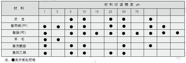 是一種表面型過濾織布結(jié)構(gòu),經(jīng)過高溫定型,以防在過濾過程中造成濾孔擴(kuò)張。因而具有絕對(duì)精密過濾等級(jí),捕捉雜質(zhì)于其濾材表面上,濾袋可反復(fù)清洗再使用,具體詳見下表。