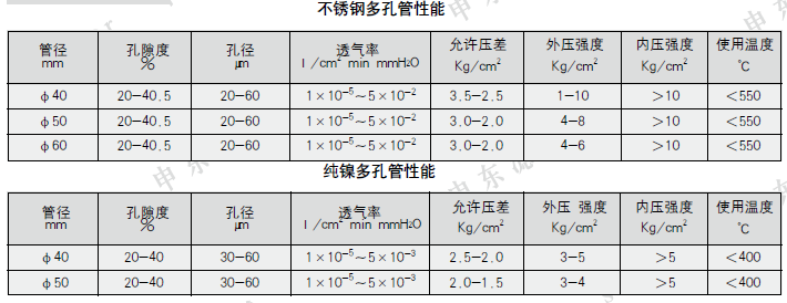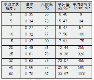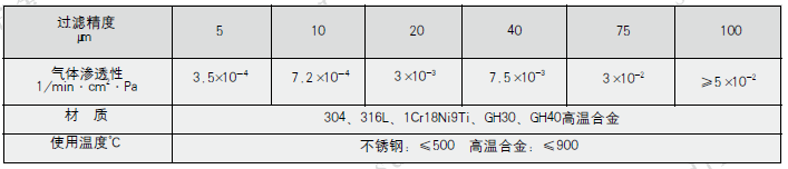 四、不銹鋼纖維燒結氈主要性能參數表