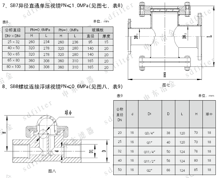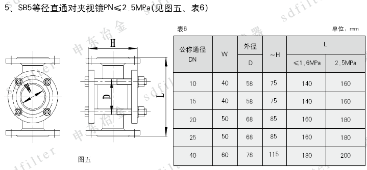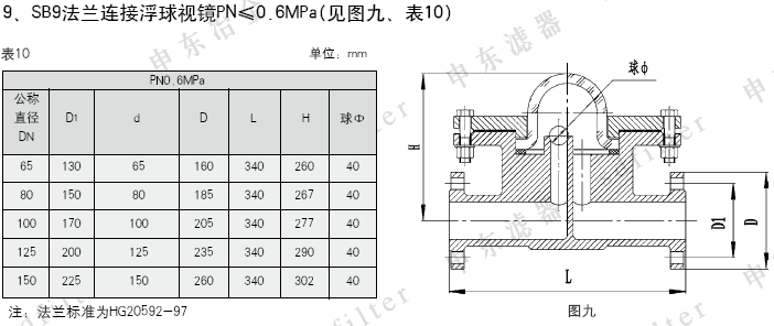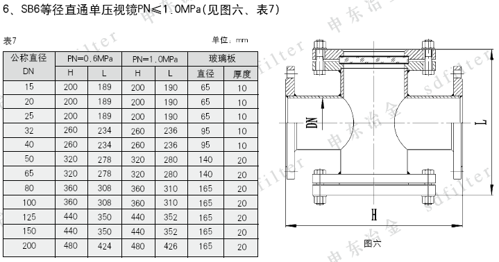 一、產品簡介 視鏡是工業管道裝置上主要附件之一,在石油、化工、醫藥、食品等工業生產裝置的管道中,視鏡能隨時觀察管道中液體、氣體、蒸汽等介質流動及反應情況,起到監視生產、避免生產過程中事故發生的作用。 我廠生產的視鏡參照《化工管道手冊》有關標準設計制造,品種規格齊全。 二、訂貨須知 (一)直通視鏡的結構形式有7種: 1、直徑式 2、縮徑式 3、偏徑式 4、無徑式 5、擺板式 6、葉輪式 7、浮球式 我廠生產的視鏡為直徑式,用戶如需別的形式請注明。 (二)我廠生產的視鏡,連接法蘭標準通常為HG20592-97,也可提供HGJ、GB、SH或ANSI、JIS標準,用戶在訂貨時注明代號及密封面模式。 (三)視鏡允許急變溫度<60℃,并按HGJ501~502~86標準進行試驗驗收。 (四)我廠可按用戶的要求,設計、制造特殊規格的視鏡。