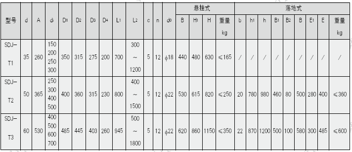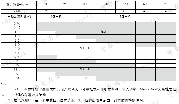 一、SDJ-T型旁入式攪拌機(jī)選型表